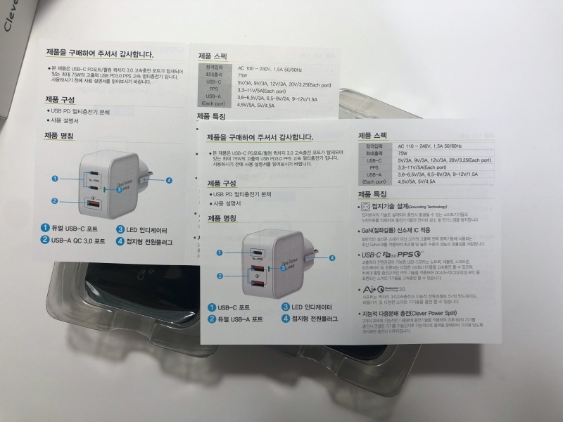 클레버 타키온 75W GaN 3포트 접지형 PD 고속멀티충전기 G12CA : 바이퍼럭스