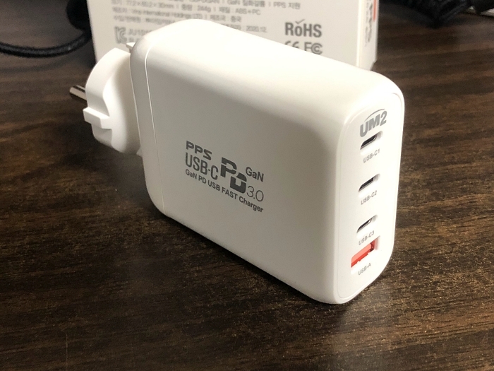개인적으로 이런 작은 사이즈에 접지 기능까지 있으며 단일포트 최대 100W를 지원하는 충전기가 나왔다는게 매우 기쁘다.