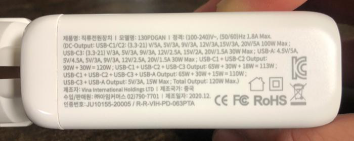 스펙시트상 C1, C2포트 단일 최대 100W, C3, A1포트 단일 최대 30W 출력이 가능하다고 한다.