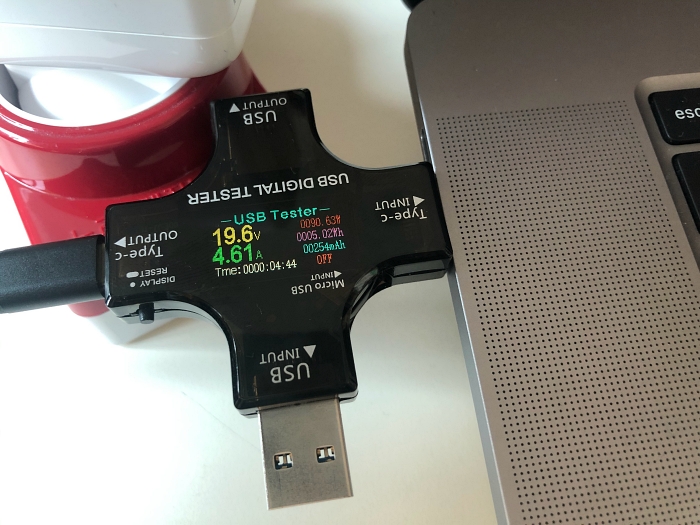 C1에 맥북, C2에 갤럭시 탭을 연결해서 충전해보니