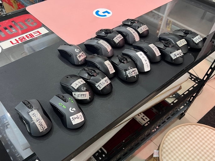 이렇게 뒷편에 여러 스위치가 적용된 마우스들을 만져보며