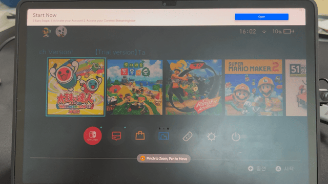 스위치 자체 스크린샷 이미지와 갤럭시탭 미러링 화면을 스크린샷 한 이미지를 가져와 비교해봤다.
