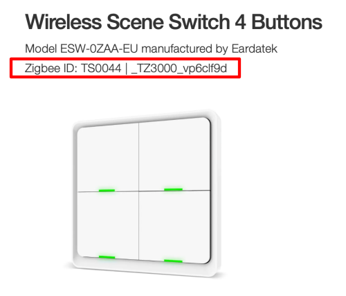 Eardatek Wireless Scene Switch 4 Buttons ESW-0ZAA-EU Zigbee compatibility