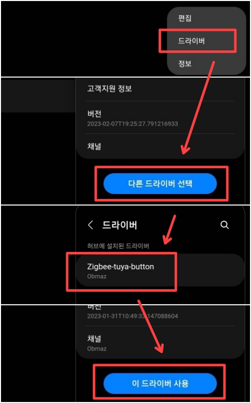 다른 드라이버 선택에서 위에서 설치해준 tuya 버튼 드라이버를 사용하면
