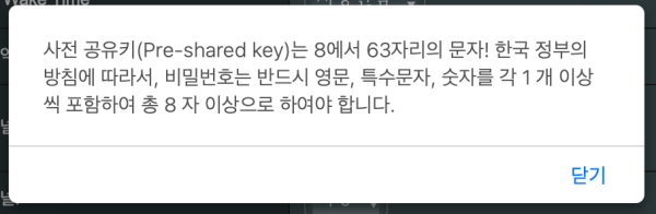 + 무선랜 비밀번호도 특수문자 들어가야해서