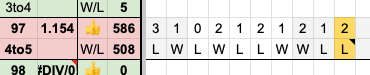 기록 기준 등락 97번째 구간, 508번째 게임에서