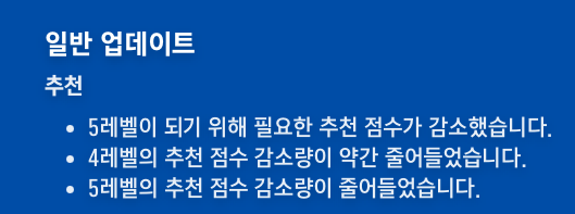 각각 이렇게 추천레벨 관련 업데이트가 진행되었다.