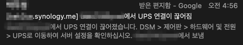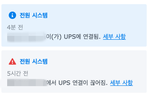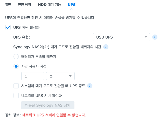 그래서 단순 시놀로지상에서 '네트워크 UPS' 가 아닌데 뭔가 꼬여서 이런 메시지가 발생하는듯 했다.