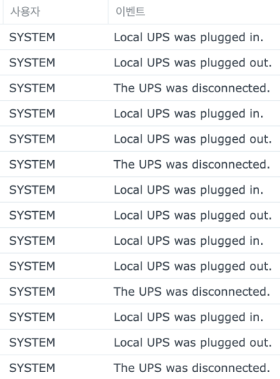 "네트워크 UPS 서버에 연결할 수 없습니다." 라는 메시지가 뜨고 연결이 끊겼다는 메시지가 발생하는게 현재 문제다.