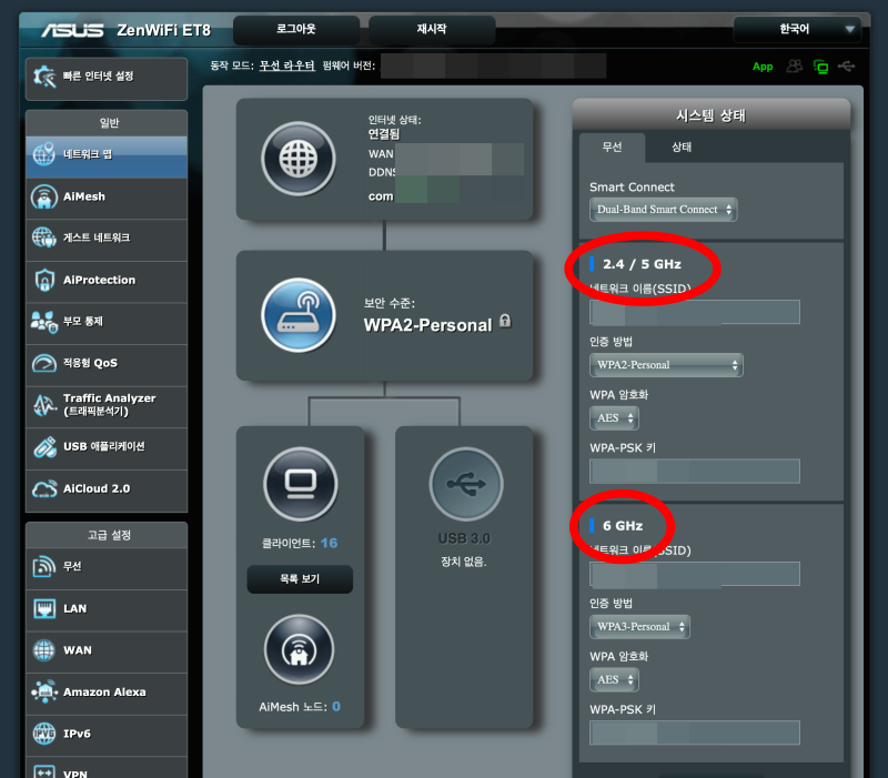 다른 ASUS 공유기와 동일한 설정창에 적응은 매우 빨랐고,